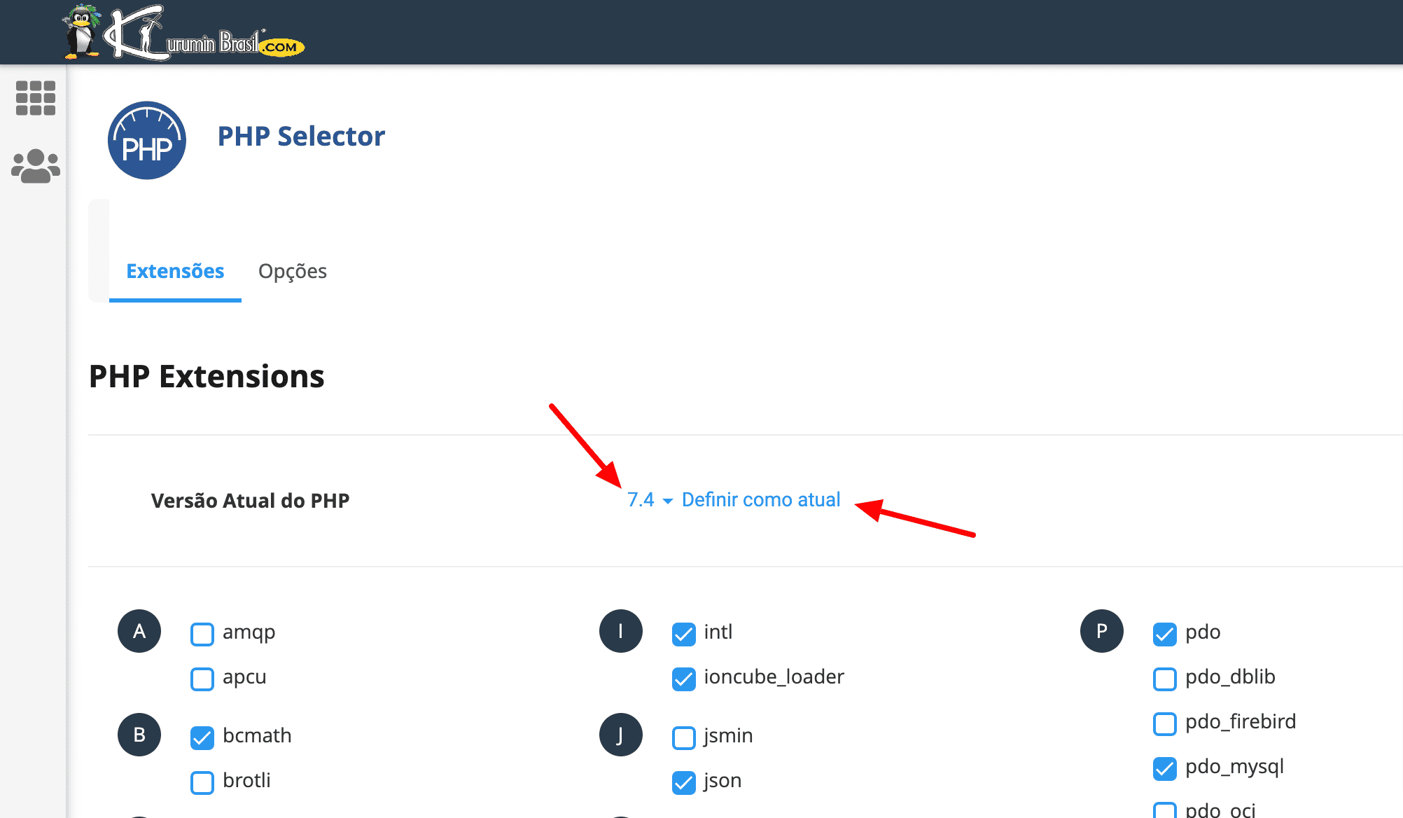 2) Em seguida selecione a versão php para qual deseja alterar e clique em Definir como atual.